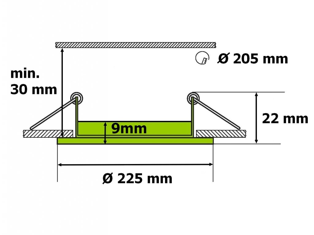 Rozmery 225×10mm (p/v) , velkost otvoru na svietidlo - pr.205mm